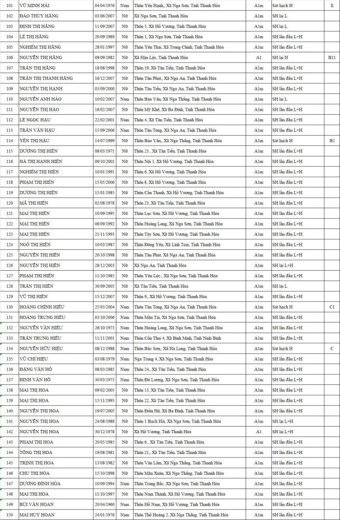 Danh sách thi sát hạch NGA SƠN_SÁT HẠCH MÔ TÔ_DANH SÁCH & SỐ BÁO DANH_15/01/2026 Ngày đăng 14/01/2026 , tác giả alex